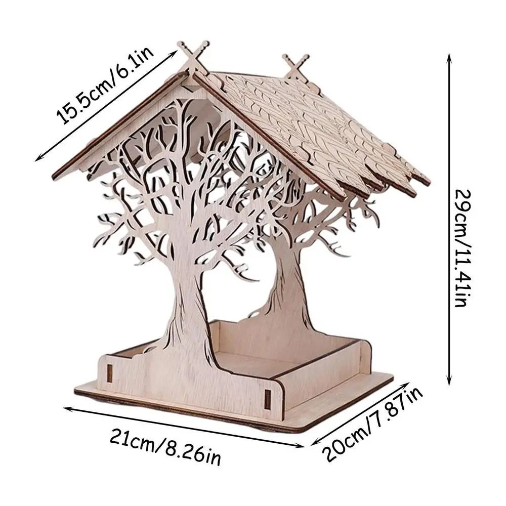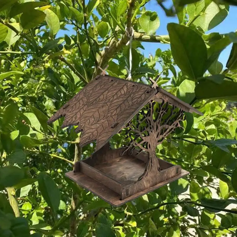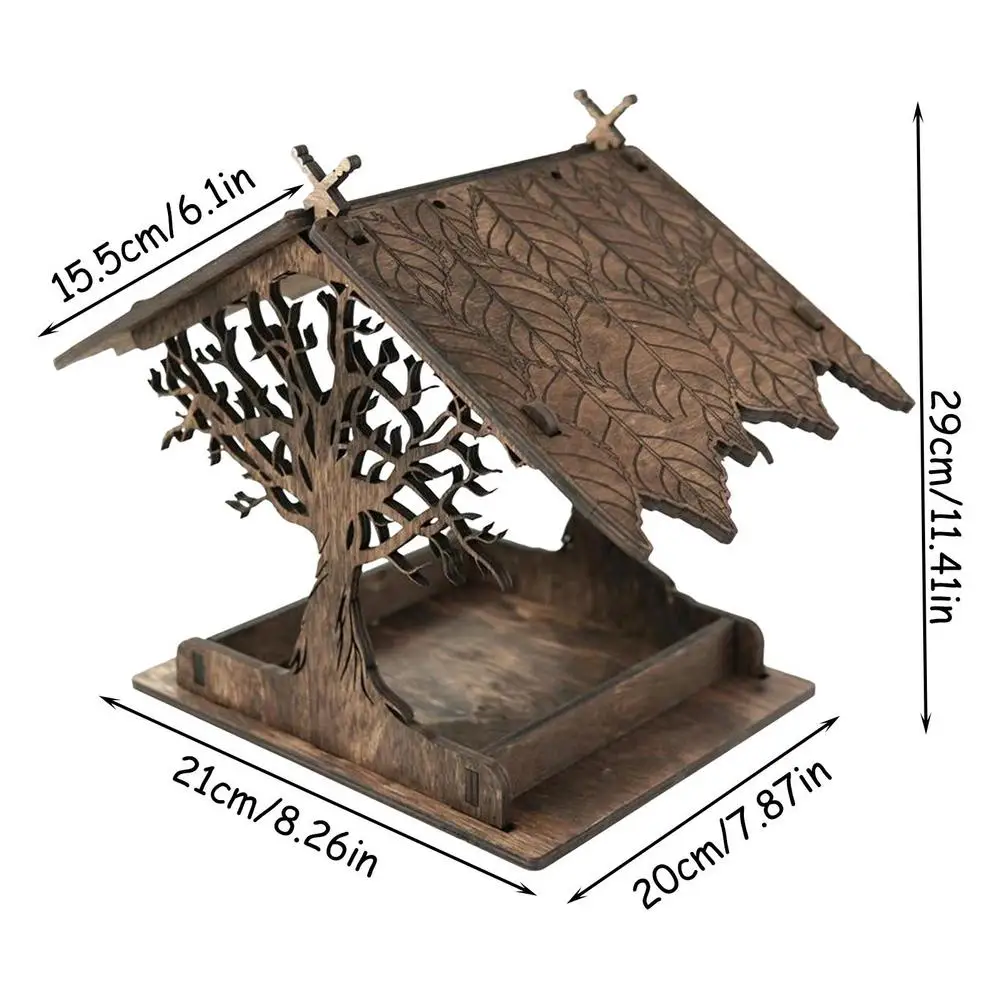 • The cottage bird house is built with heavy-duty wood, making it tough enough to handle the outdoors. Plus, its natural wooden finish blends beautifully into any garden, making it feel like it’s always been part of your outdoor haven.